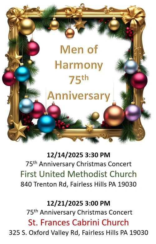 We trace our roots back 74 years to the construction of the United States Steel’s Fairless Works plant in Fairless Hills, PA. Our original purpose was to sing Christmas carols for the men who were constructing the mill and would not be home for Christmas. The group soon developed shows and a road tour to include tree lightings, benefits, schools, nursing homes, hospitals, senior centers and eventually, year round concerts.